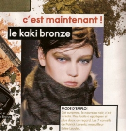 Mais là où les choses se corsent, c'est lorsque ce même numéro de ELLE me balance cette même semaine au visage qu'en matière de maquillage, le kaki-bronze est le nouveau noir. Faudrait savoir ? J'ai certes plus d'affinités avec le bronze qu'avec le gris. Jusqu'à n'être pas peu fière d'avoir obtenu à l'arrachée le dernier khôl Guerlain de ma ville dans cette couleur, qui depuis n'est plus commercialisée. Il y aurait donc deux nouveaux noirs, le bronze et le gris.