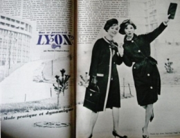 Lyon, c'est aussi le textile, et pas seulement la soie. "Tout à côté des grandes dynasties de tisseurs a surgi une super-Pénéloppe qui depuis trente-trois ans, n'arre^te pas jour et nuit, de filer : elle s'appelle la Rhodiaceta. Sa maison est la plus grosse productrice de fibres et fils artificiels et synthétiques en Europe." Y sont présentées des robes dont les tissus sont alors à la pointe de la technologie.