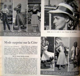 La fermeture du Festival de Cannes a donné le signal : la saison s'ouvre sur la Côte. Industriels, couturiers, gens du Monde et d'ailleurs, tous ceux qui fuyaient les festivités cinématographiques commencent à arriver. Le nouveau visage est celui de Katie, fille d'un industriel bruxellois et nouvelle coqueluche de Cannes, qui vient d'être engagée par Jacques Fath. Elle lance les boucles d'oreilles de couleurs. Quant à la nouvelle robe du soir, révélation de la saison, elle est raccourcie.