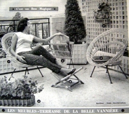 Le Bon Magique propose de meubler sa terrasse pour des vacances toute l'année. Fauteuil éventail, repose-pieds, porte-revues et jardinière sont en rotin. Le fauteuil est vendu 4.250 F pour un ELLE à 50 F (soit 195,50 € pour un ELLE à 2,30 €).