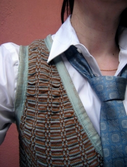 pas fan du jacquard en général non plus...mais alors le petit gilet, sur la chemise blanche avec la cravate? j'adore!