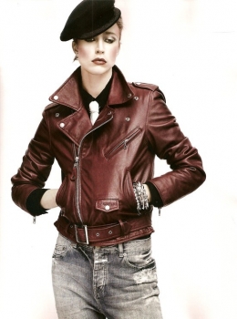 Mais la tendance perf' ne semble pas près de nous lâcher, si j'en crois le numéro de juin de Vogue et sa série boyish. Je passe sur les chaussettes blanches à la Michael JAckson accompagnées de mocassins bateau qu'on retrouve tout au long de la série - euh, comment dire ? Mais le saint du saint, le perf' Schott, dans cette couleur, il est quand même juste à tomber, non ?