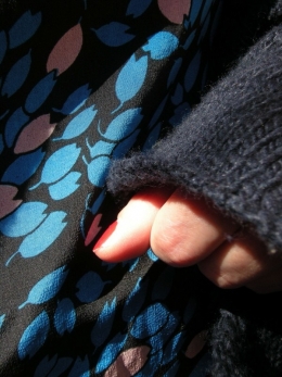 J'ai fait les fins de soldes en pensant au printemps et n'avais pas encore eu l'occasion de porter cette blouse de soie imprimée de bleu Klein et à l'épaule "so 80's".
