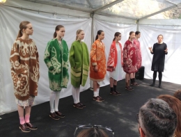 Sa collection est courte, resserrée autour d'une déclinaison de manteaux en gros lainage à ramage qui rappellent les couvertures de lit de grand-mère.
